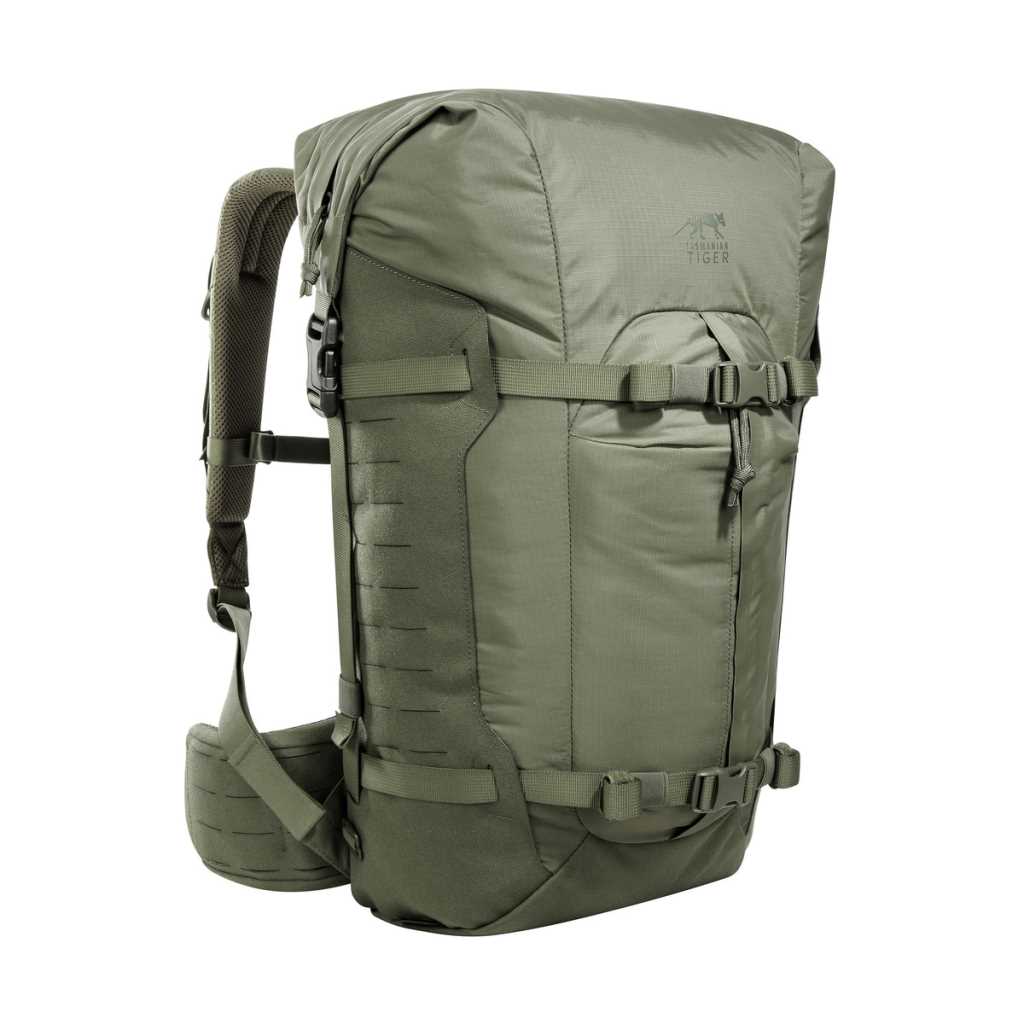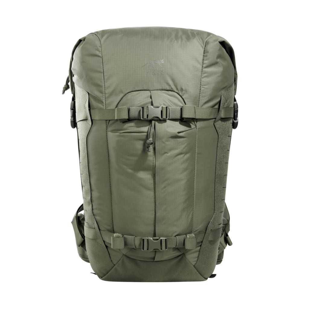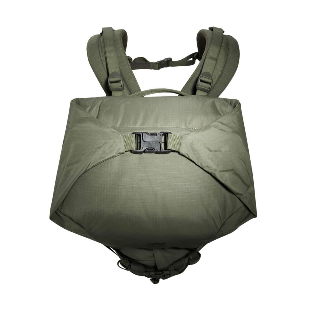 Lightweight backpack with 28 liters volume, padded back and removable hip belt. Suitable for carrying light or voluminous equipment. It features two full circumferential compression straps and a roll top closure with two locking positions. The MOLLE hook-and-loop patches in the main compartment can be used for individual customization.