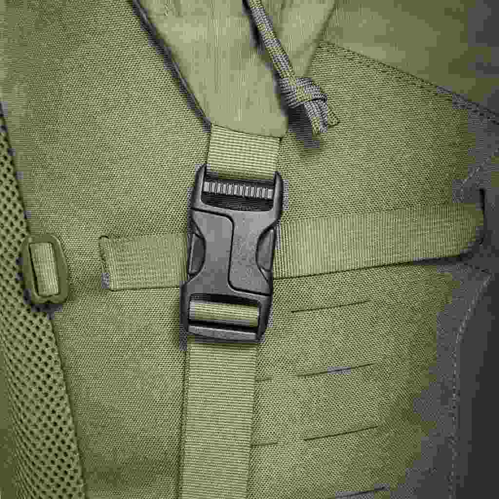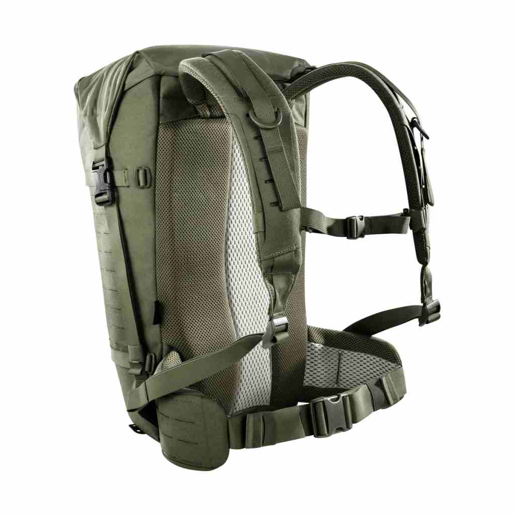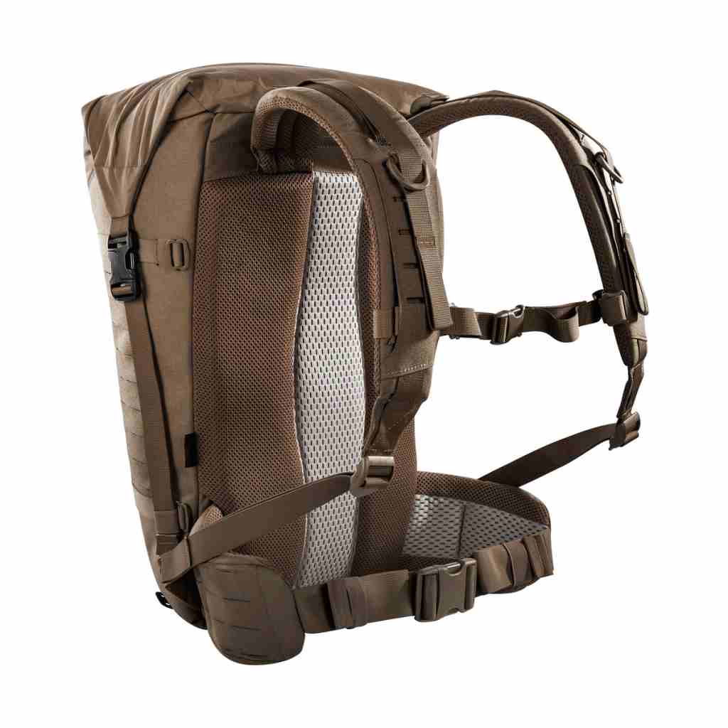 Lightweight backpack with 28 liters volume, padded back and removable hip belt. Suitable for carrying light or voluminous equipment. It features two full circumferential compression straps and a roll top closure with two locking positions. The MOLLE hook-and-loop patches in the main compartment can be used for individual customization.